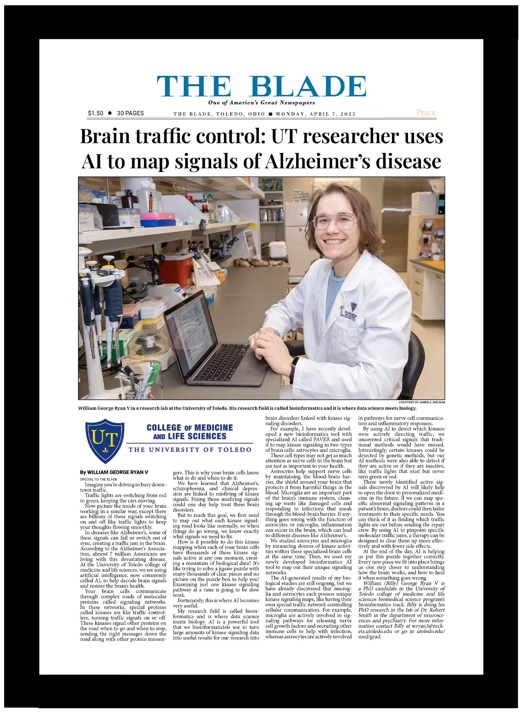 Custom designed plaque at “14×20”, displaying Brain traffic control: UT researcher uses AI to map signals of Alzheimer’s disease.